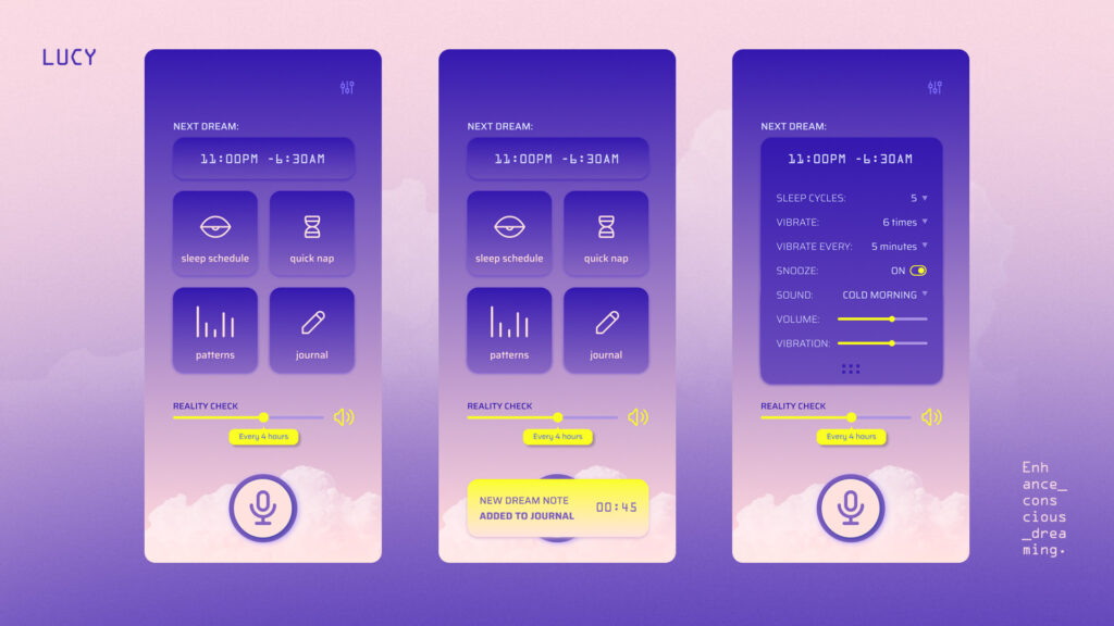 Research showed us users didn’t have easy access to the features they needed right on time. For example to easily record a dream at the moment they wake up. Users needed short, and easy copywriting with clear icons, because most of times they were using the app with a blurred vision at the moment they open their eyes.